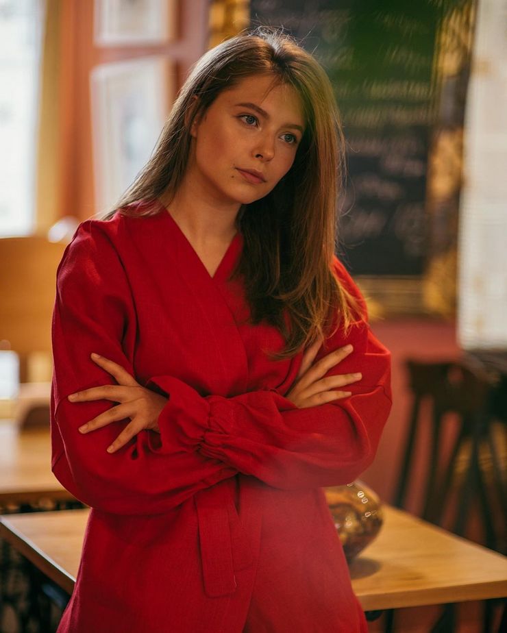 Мария будет представлять бренд одежды Марины и Антона Лирников, которые являются хорошими друзьями Лены. В качестве места для фотосета было выбрано уютное кафе. Дочь знаменитости предстает в голубом комбинезоне, платьях-оверсайз черного и красного цветов, а также приталенных нарядах.