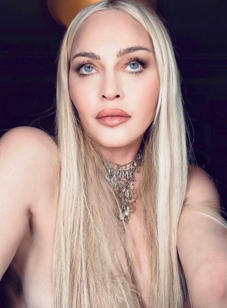 Как сообщает Plitkar со ссылкой на официальный Инстаграм певицы, у себя в блоге Мадонна запостила снимки, на которых она позирует обнаженной. При этом свою грудь исполнительница частично скрыла длинными волосами.