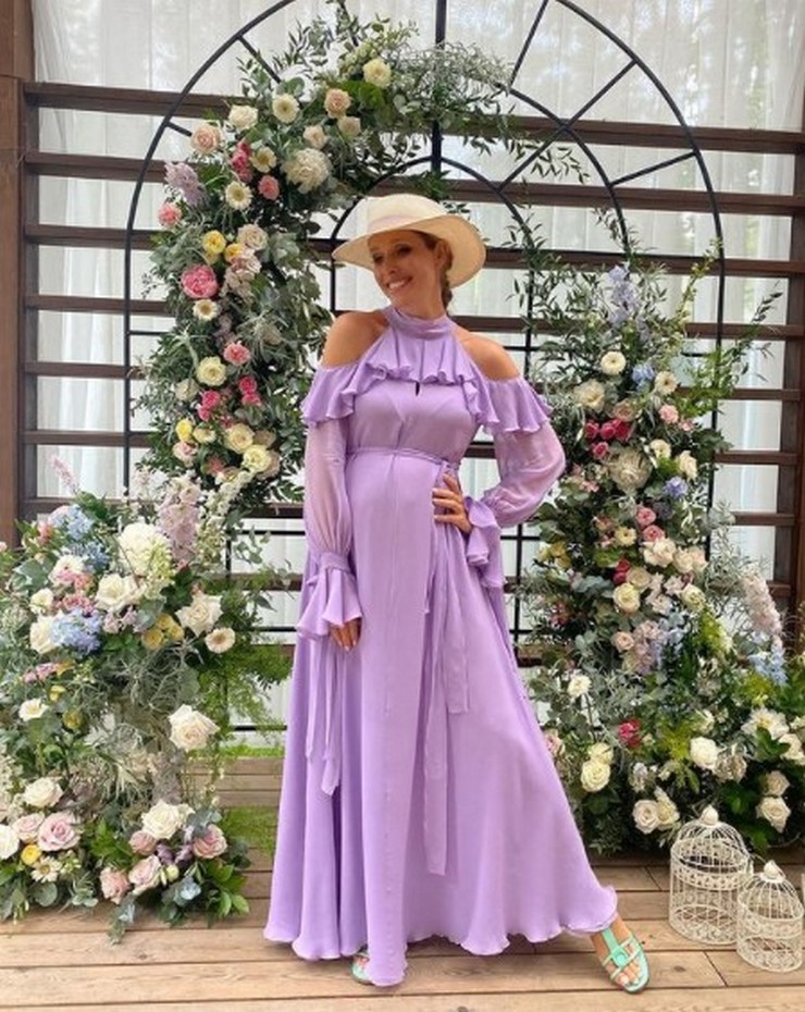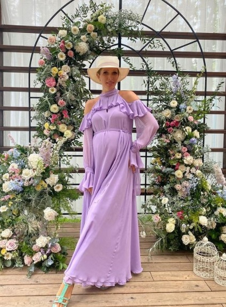 Как сообщает Plitkar со ссылкой на официальный Инстаграм телезвезды, у себя в блоге Екатерина запостила фото, на которых продемонстрировала безупречный образ для съемок. Ведущая позировала рядом с фотозоной, украшенной большим количеством букетов. Осадчая подобрала для работы макси–платье с оголенными плечами. Оборки на платье добавили романтичности, а тоненький поясок еще больше выделил беременный животик. Довершила свой лук будущая мама бирюзовыми босоножками без каблуков и шляпкой с ленточкой.