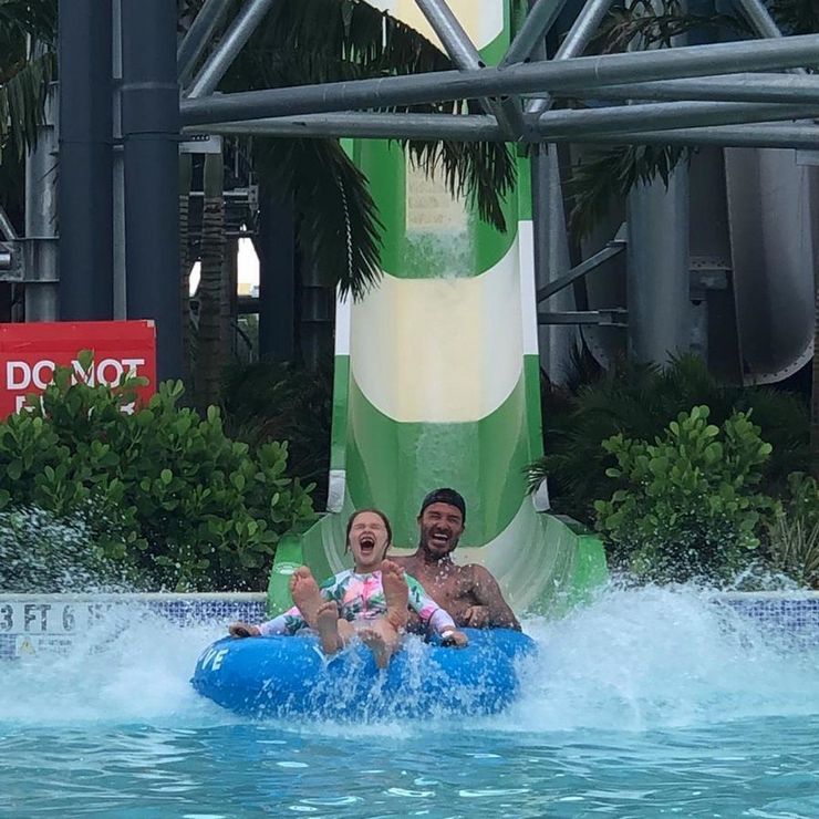 44-ний экс-футболист показал у себя в соцсетях, как активно проводит время с супругой и детьми. Судя по фотоотчету Бекхэмы первоначально отправились в аквапарк, где они катались на водных горках и вейкбордах. Затем они порыбачили и сходили в гости к подруге дизайнера – Еве Лонгории.
