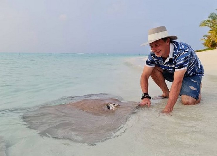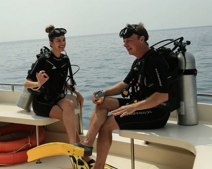 У себя в блоге Комаров запостил снимки, на которых показал подписчикам, как отдыхает на Мальдивах со своей женой Александрой. Недавно пара испробовала дайвинг, который им похоже понравился.