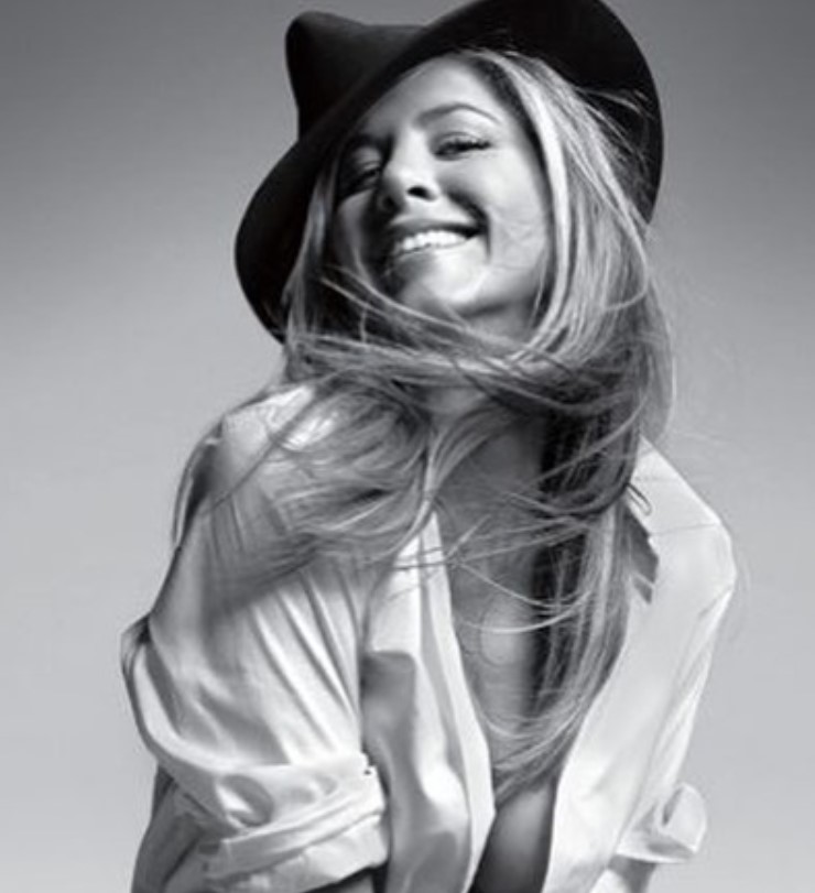 На черно-белых фотокадрах звезда заснята в беленькой свободной сорочке на голое тело и в довершение совсем ее снимает.