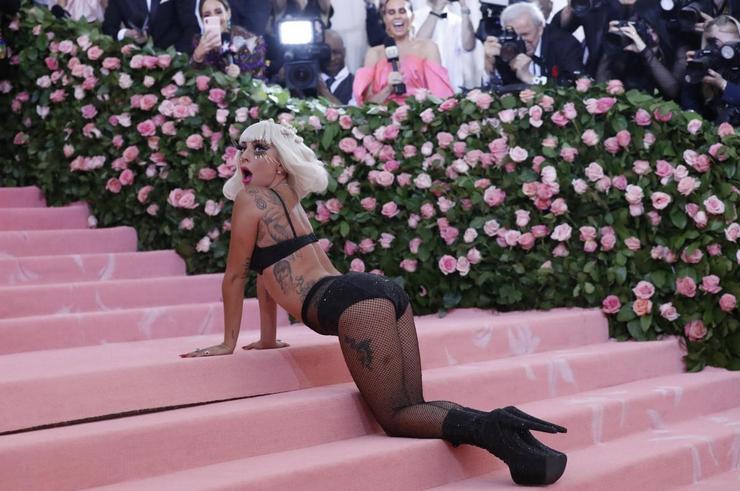 Одни знаменитости дополнили свой привычный “лук” красной помадой или необычной укладкой волос. Кто-то же, как например Леди Гага, превзошел все ожидания. Эпатажная исполнительница устроила настоящее шоу с раздеванием на мероприятии.