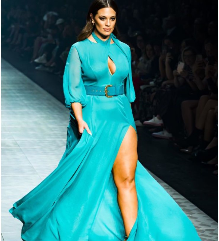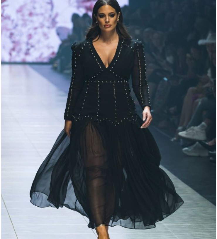 Эшли вышла на подиум при показе коллекции Jason Grech, показав как на ней сидит струящееся платье цвета бирюзы с высоким разрезом над ногой и глубоким декольте. Также она продефилировала на подиуме в черном наряде с прозрачной юбкой. Этот цвет превосходно ее стройнит.
