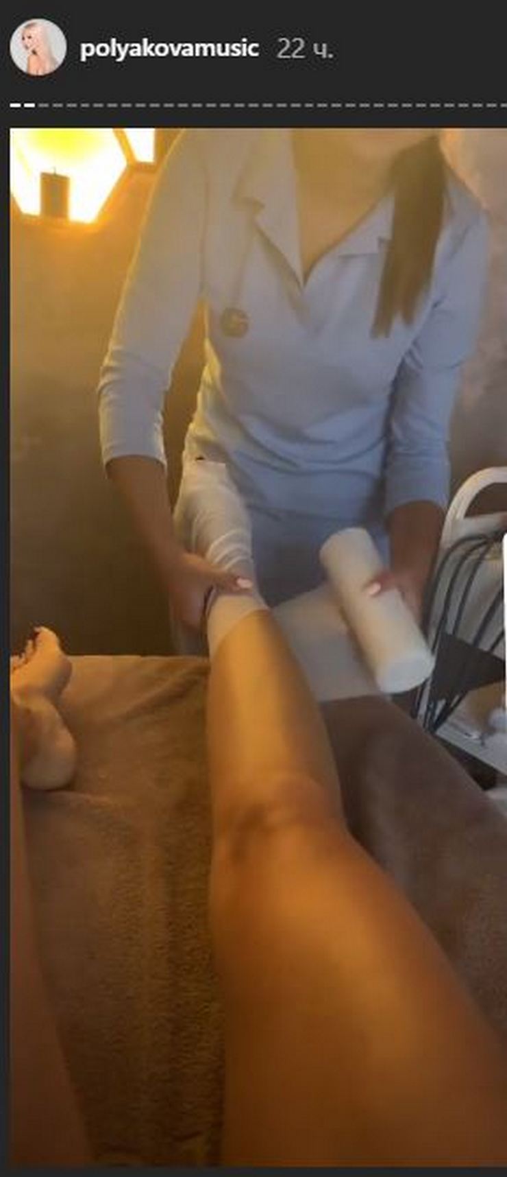 У себя в сторис в Инстаграме Полякова разместила кадры, на которых медицинский работник забинтовывает ей ноги. Но как выяснилось, это не с целью лечения. Просто Оля захотела сделать свои ножки еще красивее с помощью дренажного бинтования.