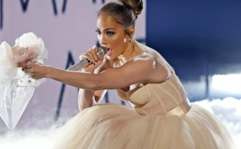Роскошная: Дженнифер Лопес в пышном платье невесты выступила на American Music Awards