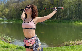В очень коротких шортах и топе: Надежда Матвеева показала, как занимается скандинавской ходьбой
