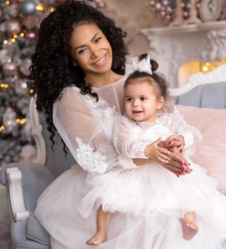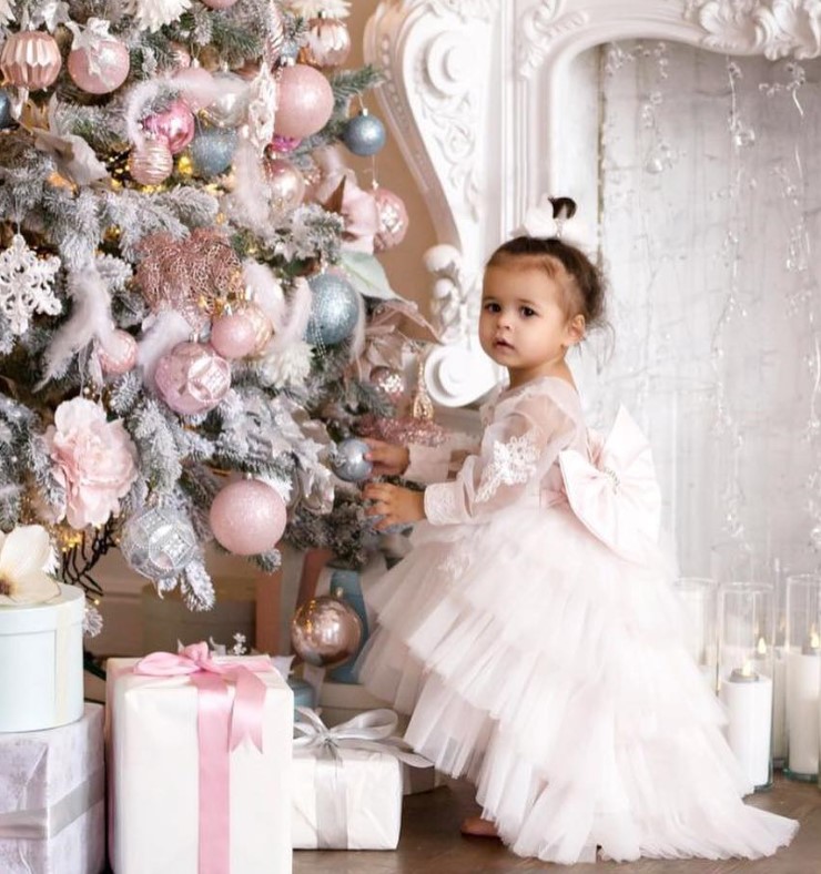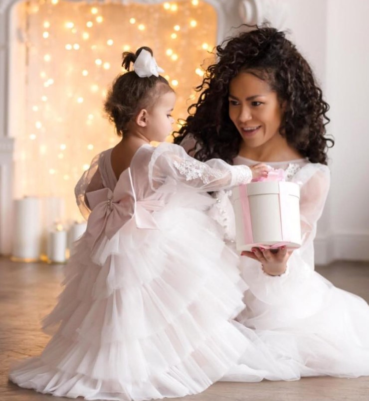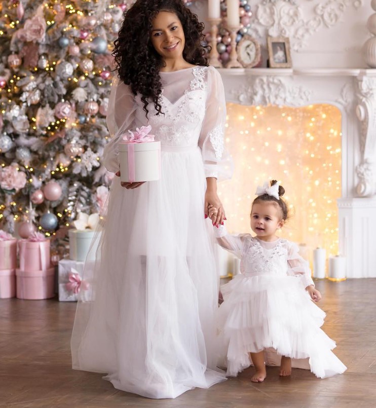 Фотоссесию провела Яна Теплова. Мама и дочь позировали на фоне новогоднего декора и елок. Стоит отметить, что наряд артистки и ее дочери выставят на аукционе, а средства от продажи пойдут на нужды детского отделения Нац. института рака.