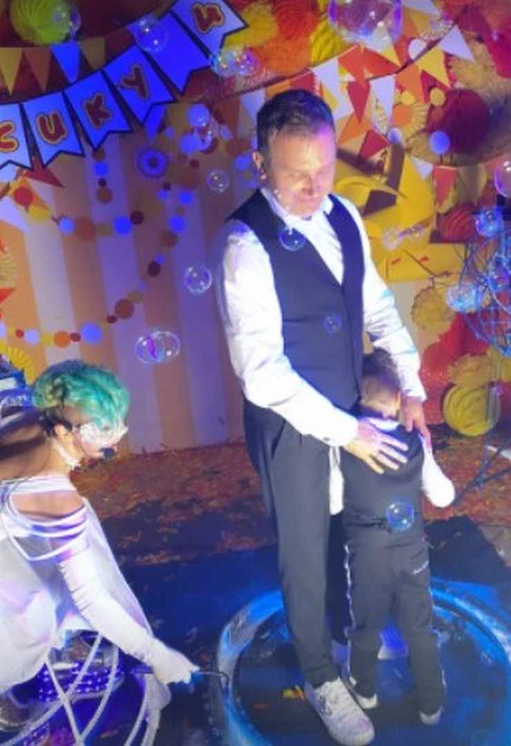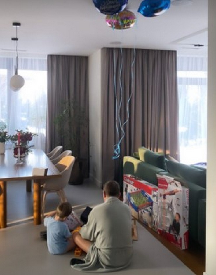 С самого утра Катя и Юрий поздравили Ивана. У себя в гостиной они устроили настоящую распаковку подарков. Родители подарили своему отпрыску кран, настольный футбол, большое количество других игрушек и много шариков. Звездная родительница засняла момент, когда папа и сын рассматривают новые игрушки.