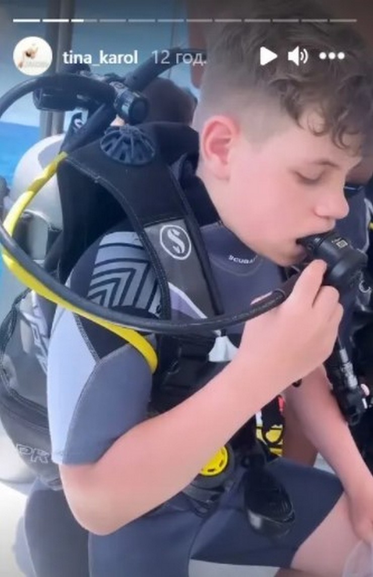 Как сообщает Plitkar со ссылкой на сайт “Обозреватель“, звездное семейство захотело попробовать глубоководный дайвинг. У себя в Инстаграме Тина выложила несколько видео в сторис, на которых она заснята с Веней в гидрокостюмах. Певица продемонстрировала тот момент, когда они ждали, что будут прыгать в воду. Стоит отметить, что артистка заявила, что свой глубоководный прыжок она посвящает YUNA “2021“. Заметим, что Кароль одержала на церемонии сразу три победы в номинациях: “Лучший дуэт“, “Лучшая песня к фильму“, “За вклад в развитие муз. индустрии“.