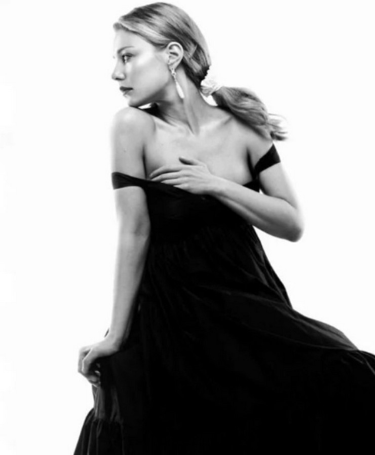 На обложке свежего номера Кароль запечатлена в черном платье из бархата, которое выгодно выделило талию звезды. Автором элегантного наряда Тины стала Светлана Бевза. Фаны уже привыкли, что исполнительница на сцене демонстрирует образ “роковой” женщины. На снимках же Тина опробовала на себе “хрупкий” образ.