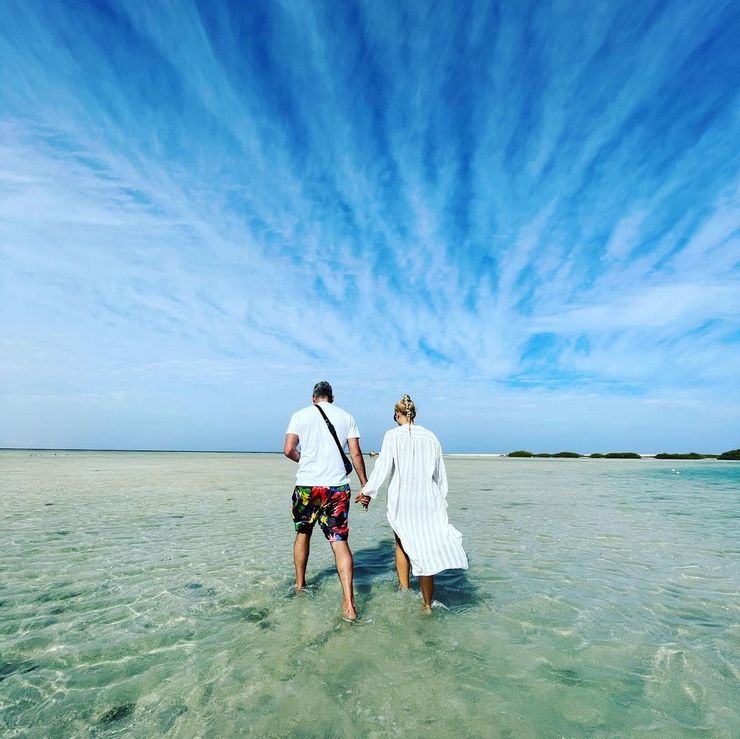Также исполнительница позировала возле деревьев. На одном из кадров заняты супруги, держащиеся за руки и идущие по берегу. Поклонники сознались, что снимки привели их восторг.