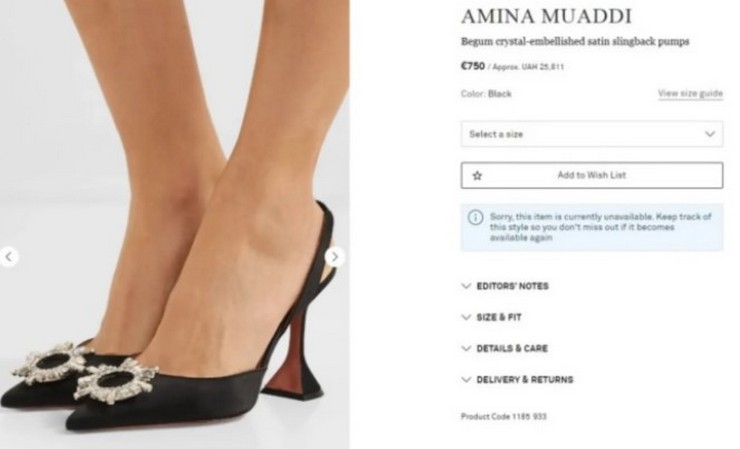 Свой романтический лук Мишина довершила чёрными туфлями с необычным каблучком, украшенными кристаллами. Это обувь бренда Amina Muaddi и стоит она 750 евро – это около 26 тыс. грн. Стоит отметить, что такие же туфли есть в гардеробе и у ведущей Леси Никитюк.