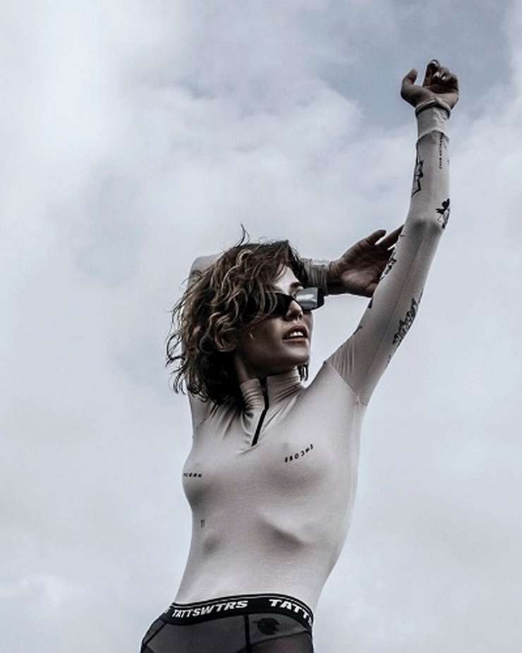 На 3-х кадрах, которые запостила знаменитость, девушка запечатлена в черных колготах и боди в обтяжку. Она сексуально прогнулась и тем самым привлекла внимание фолловеров к тому факту, что у нее под одеждой отсутствует белье.