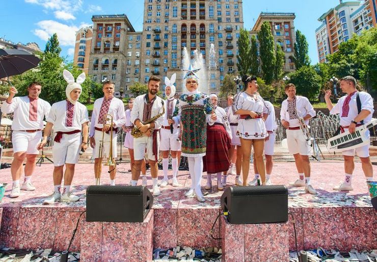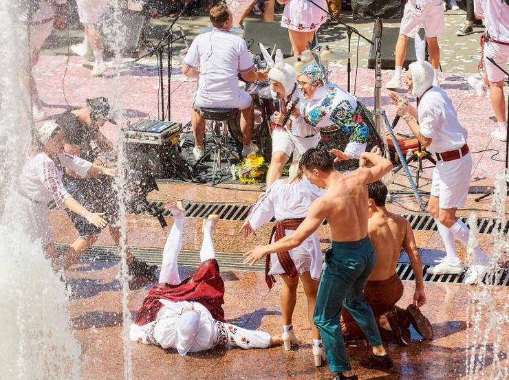 Известная артистка поразила своим неожиданным выступлением в центре Киева. Сердючка со своим коллективом устроили настоящее шоу с заводными плясками и купанием в фонтане.