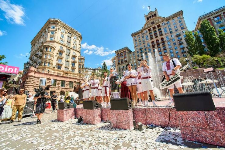 Необычный концерт знаменитости сделали на Крещатике не случайно – таким образом проходили съемки праздничного концерта, показ которого запланирован на телеканале “Украина” 24 августа. Телешоу будет построено как видеопутешествие по Украине, а в качестве гидов будут выступать известные украинские исполнители.