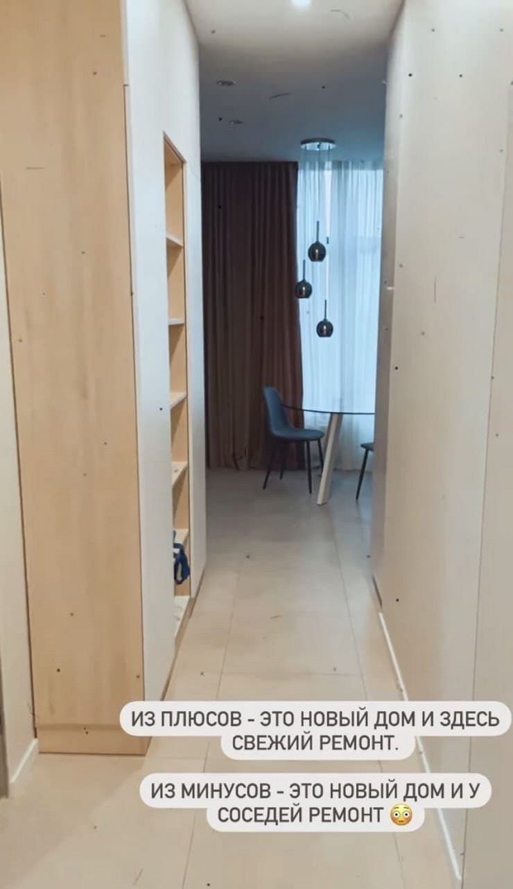 Пара подобрала себе жилье меньших размеров, чем предыдущее – 67 “квадратов“. Из плюсов Остапчук озвучил то, что здесь красивый вид, это новый дом и ремонт свеженький. Из минусов – шум у соседей из–за ремонтов.