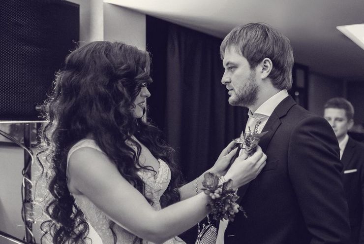 “Пересматривая снимки со свадьбы, мне припомнилось множество веселых и приятных мгновений… То в каком я хорошем настроении собирала шишки и листочки для украшения стола, так как ты очень любишь лес… Цветы в волосах и букетах, из–за которых я опоздала на свадьбу, так как все должно было быть идеальным – ох уж этот перфекционизм. Я по пути еще каким–то образом успела заскочить в салон, чтобы со свадебной прической сделать снимок на новый паспорт“,