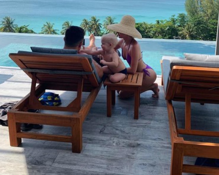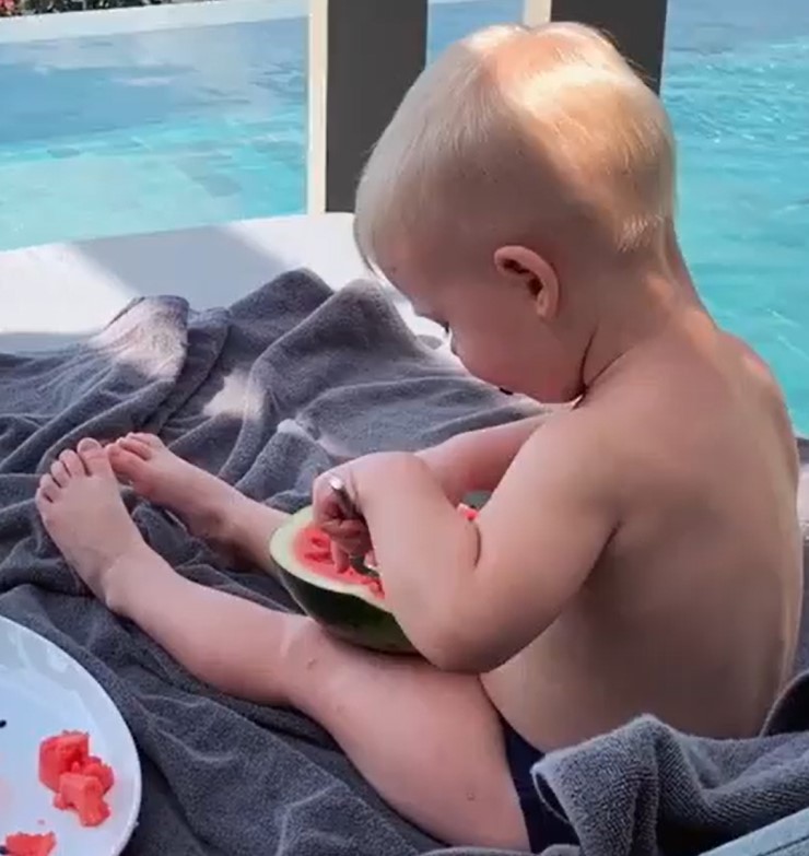 Кроме того девушка рассказала, что тщательно подготовилась к отпуску, занимаясь своей фигурой. В результате занятий в спортивном зале и диеты она смогла сбросить 10 кг. Также Алла рассказала, что их сыночку Давиду очень понравились арбузы и ананасы. В Инстаграме она выложила фото и видео, на котором малыш увлеченно лопает арбуз.