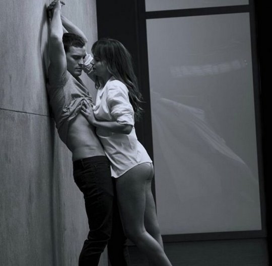 На фотоснимках главный герой эротической истории Джейми Дорнан страстно обнимает свою партнершу, которая, как считают поклонники саги пребывает не в лучшей форме и более того совершенно не сексуальна. Стоит сказать, что на официально представленных фотографиях фильма героев показали лишь по пояс, таким образом скрыв “проблемные” места Дакоты.