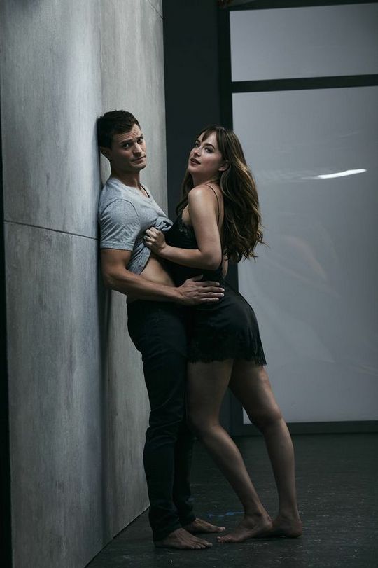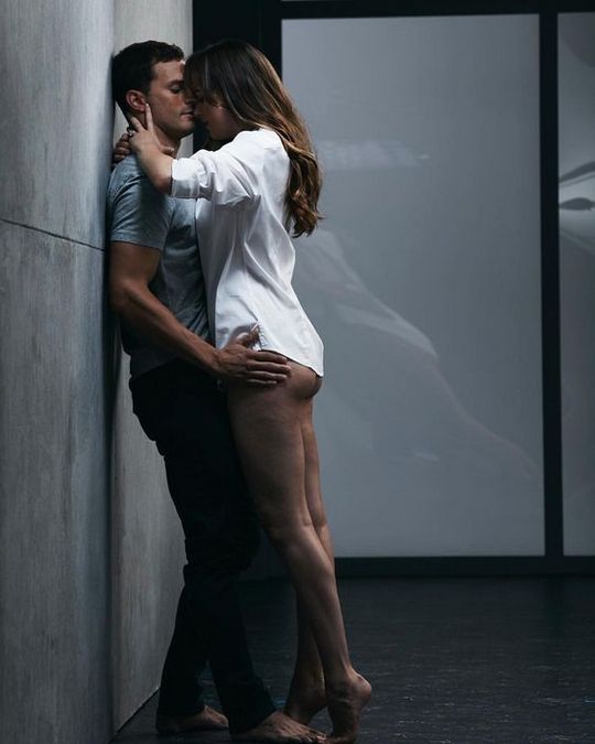 На фотоснимках главный герой эротической истории Джейми Дорнан страстно обнимает свою партнершу, которая, как считают поклонники саги пребывает не в лучшей форме и более того совершенно не сексуальна. Стоит сказать, что на официально представленных фотографиях фильма героев показали лишь по пояс, таким образом скрыв “проблемные” места Дакоты.